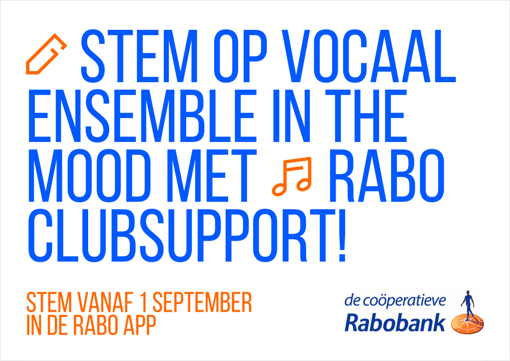 Draag je ons ook een warm, muzikaal hart toe? Meld je dan aan bij Rabo Clubsupport en stem van 1 tot 23 september 2025 op ons vocaal ensemble.